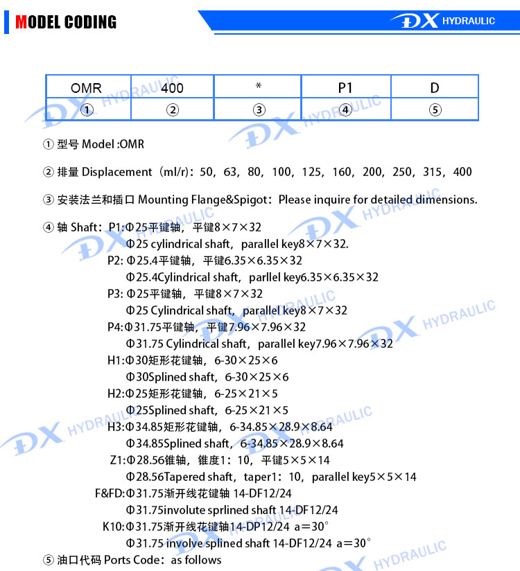The OMR motor is a shaft-distributed flow motor. It adopts a needle-inserted tooth stator-rotor pair design, featuring low starting pressure, high efficiency, and good retention. Its reliable shaft seal design allows it to withstand high back pressure, and it can be used in series or parallel. It enables convenient forward and reverse direction switching with stable rotation speed. The specially designed linkage shaft ensures a long service life of the motor.