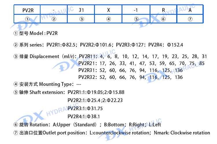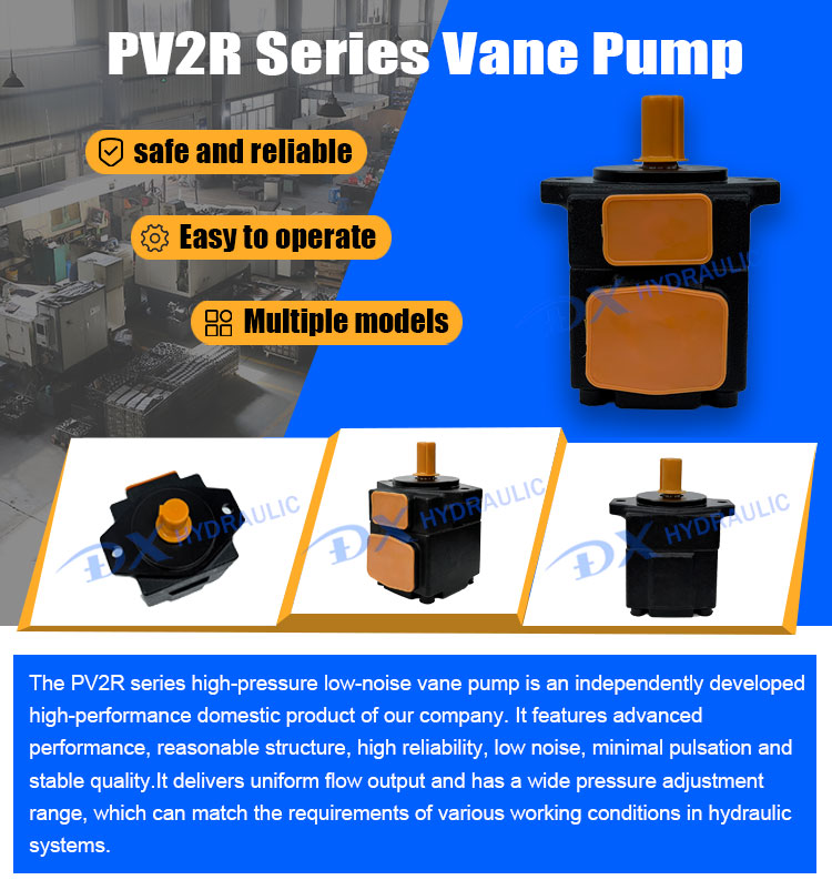 The PV2R series high-pressure low-noise vane pump is an independently developed high-performance domestic product of our company. It features advanced performance, reasonable structure, high reliability, low noise, minimal pulsation and stable quality.It delivers uniform flow output and has a wide pressure adjustment range, which can match the requirements of various working conditions in hydraulic systems.