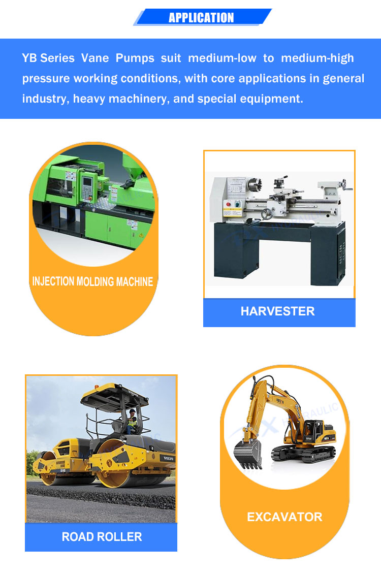 YB Series Vane Pumps suit medium-low to medium-high pressure working conditions, with core applications in general industry, heavy machinery, and special equipment.